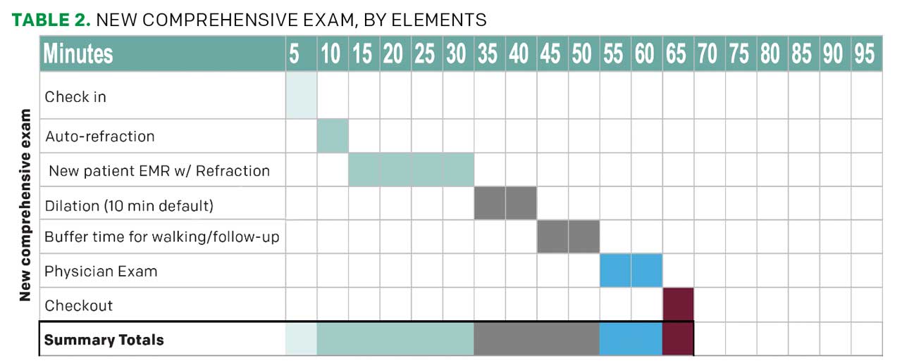 1. Defining exam elements: A retina doctor’s workup may include specific tasks with estimated time allocations (Table 2), such as: