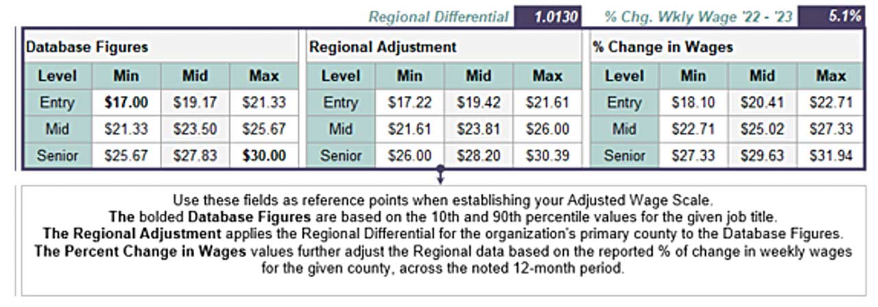 When analyzing wage scales or industry benchmarks, remember that the wage data is usually published retrospectively. Consequently, some businesses may require assistance to keep up with the current inflation rate and adjust to the cost of living in their region (Figure 3). For instance, the cost of living in a central metropolitan area could be higher than the national wages, while the expenses in a rural town could be lower than the national average.