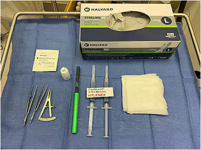 Dr. Blessing: I feel like my workflow in the operating room helps to facilitate me being more efficient. One thing I like to do is give my local anesthetic with epinephrine plenty of time to work. We will do a cursory timeout, do a basic prep with alcohol swabs followed by any necessary lid markings (such as for blepharoplasty) and I will inject local anesthetic before the patient is prepped with betadine for surgery and draped. While the staff preps and drapes, I finish up computer work and scrub. Injecting the local anesthetic ahead of time makes it so that when I actually cut, I don’t get as much bleeding. That helps cases move more efficiently, because the more time I spend during a surgery cauterizing and stopping bleeding, the slower my case goes.