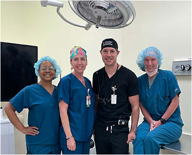 Dr. Blessing: Our ambulatory surgical center is on the smaller side—we only have three operating rooms, and then preop and postop are in the same adjacent room. But that can be an advantage over operating at the hospital in Miami. In Miami, patients have to show up and check in, then they wait in a waiting area. Next, they get moved to a second waiting area, then they are moved to a holding area before they go to the operating room. Our patients basically come from the waiting area into preop and then go straight back to the operating room, so they only go through three doors and everything’s very close together. We don’t spend a lot of time shuffling patients around.