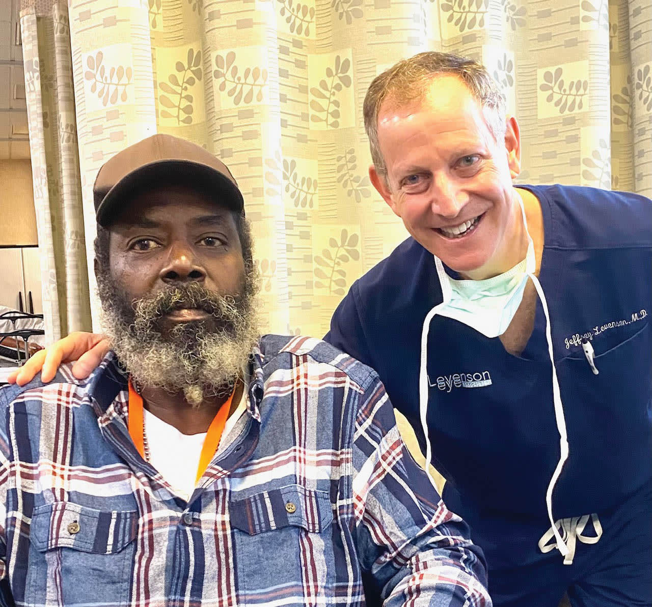 A few weeks after the surgery, the man did come back for a follow up visit. “He’s like a new guy,” says Dr. Levenson. “He had gotten a haircut, they gave him some new clothes, he had shaved … and he smiled. He had not smiled at all the first time I saw him, or made eye contact, and all of a sudden it felt like he had found a new lease on life. It made me feel like I had done what I could do to make his world a better place.”
